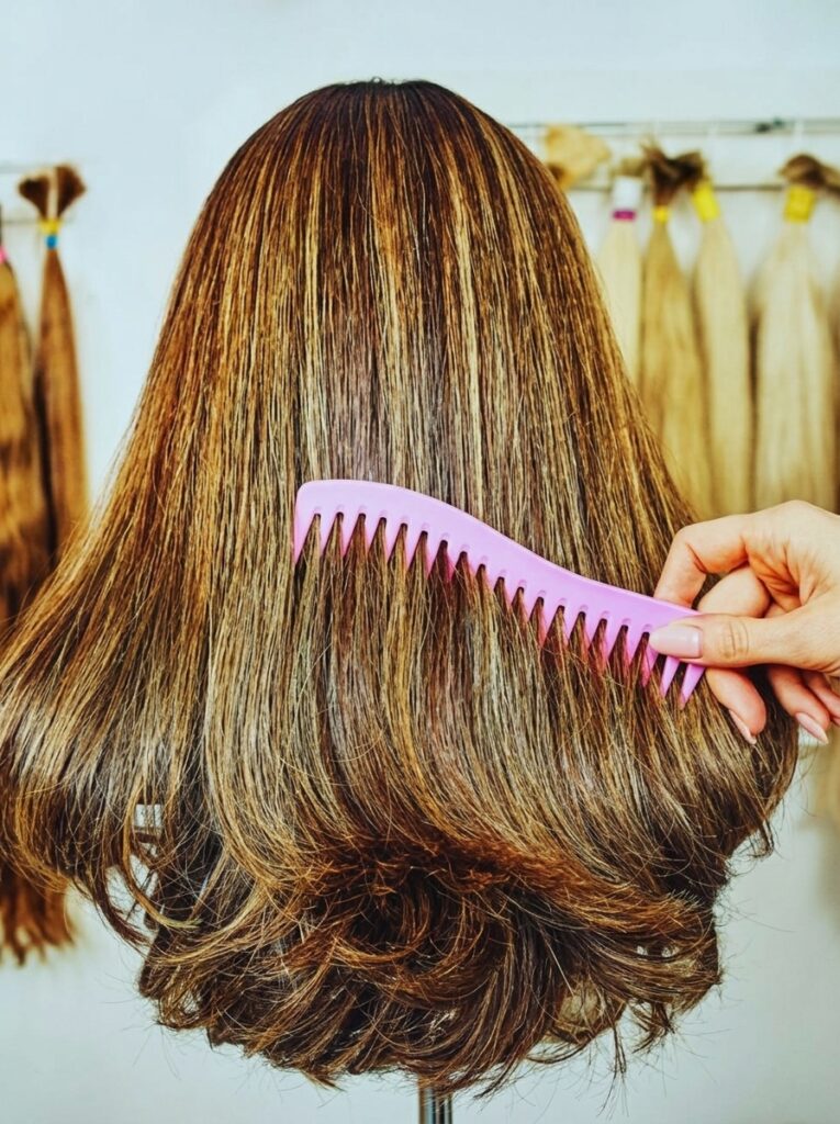 1. Rozczesz perukę delikatnie placami lub szczotką do peruk.